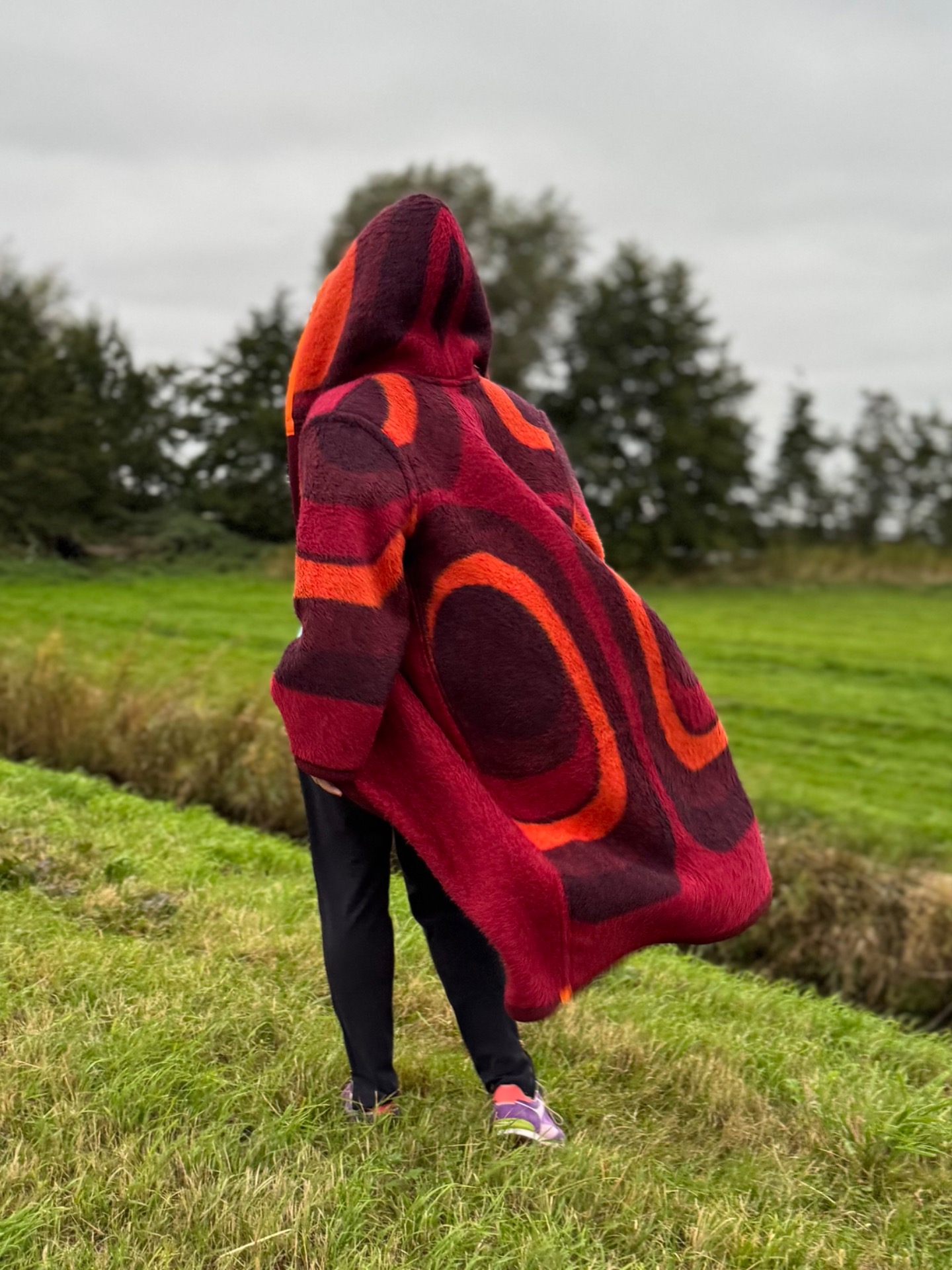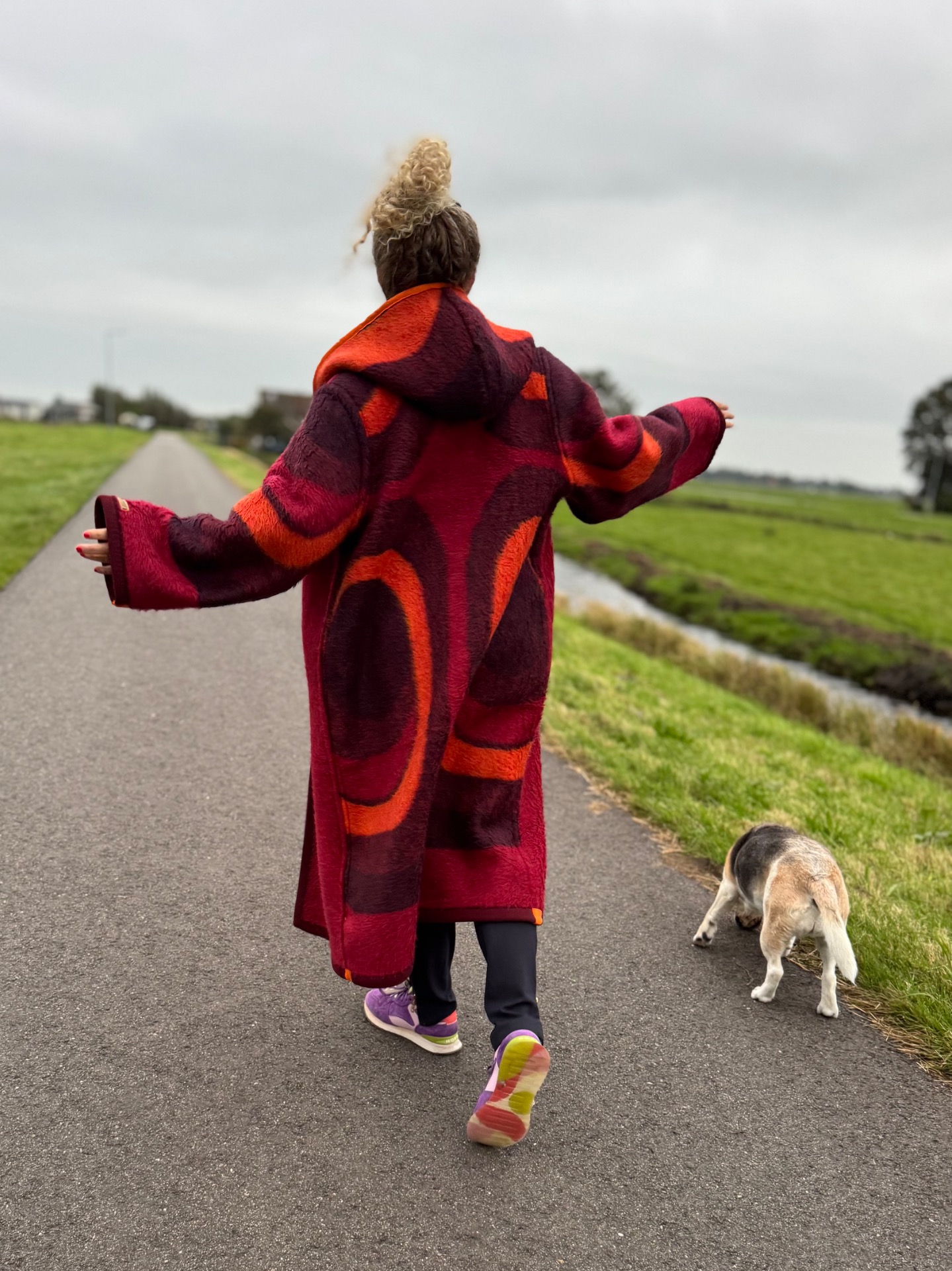 Deze knapperd heeft 2 buien. Een wijnrood-met-oranje en een olijgroen-met-roze. Dus het is maar net hoe jij je voelt vandaag. Haar nieuwe baasje was duidelijk: knaloranje biezen moesten het worden. The rest is history.