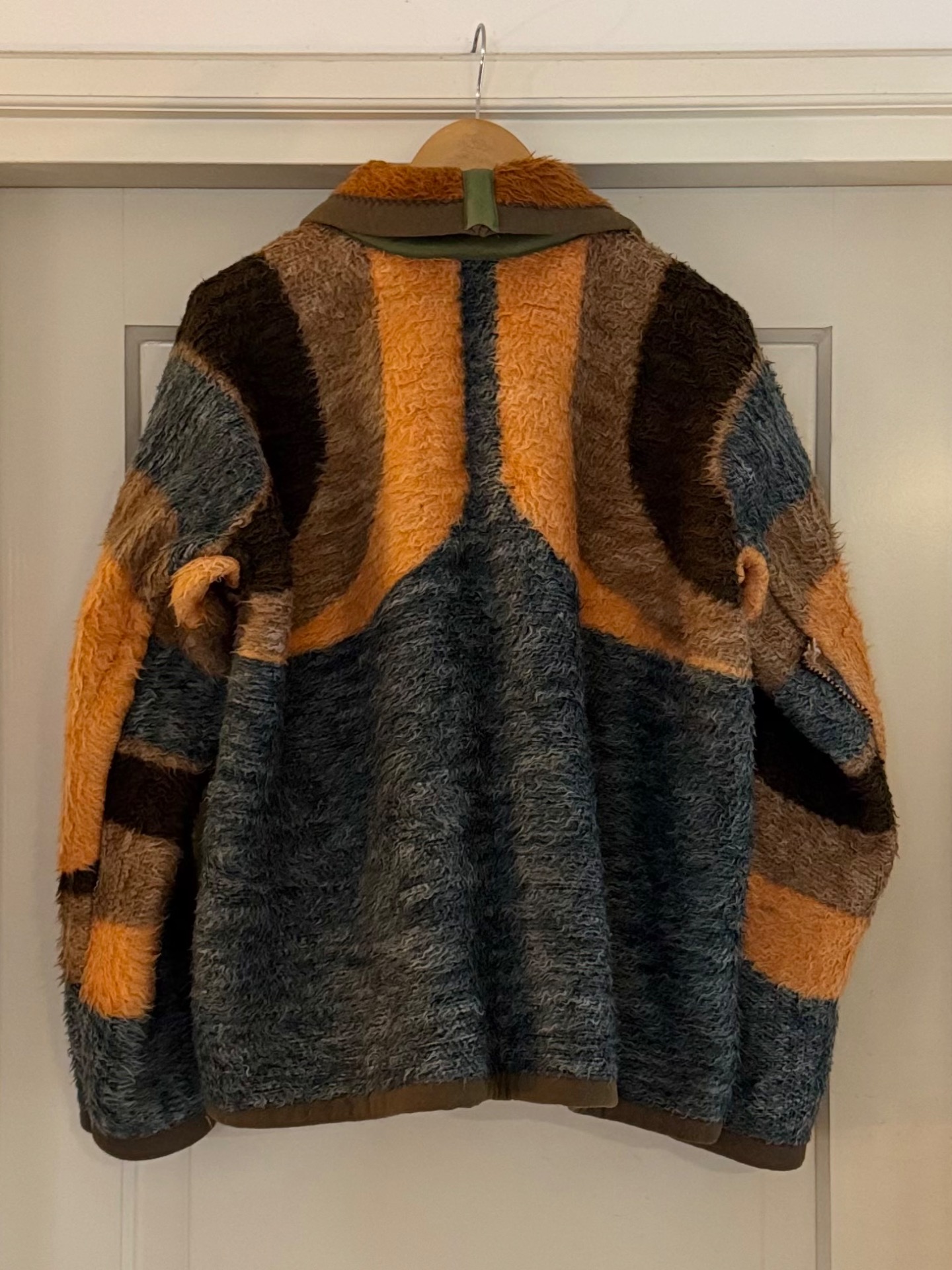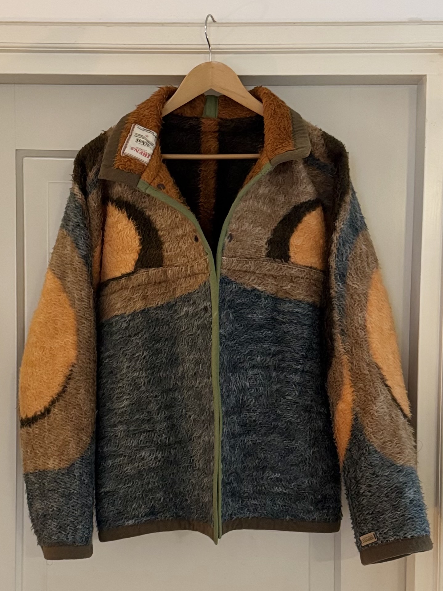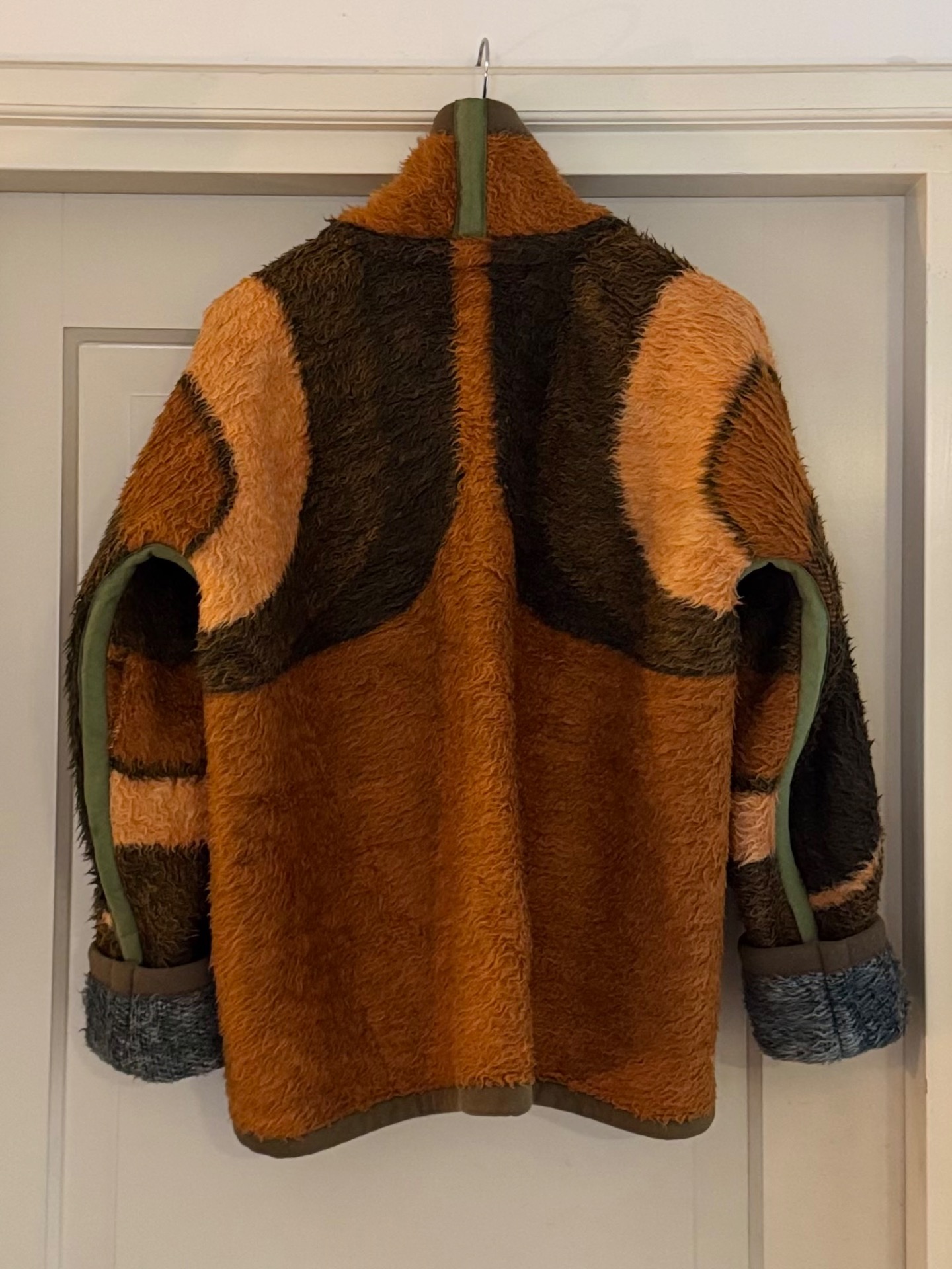 Een eeuwenoude manier van jassen maken met zero waste door de slimme manier van knippen. Deze deken is een beetje ruig geworden door de tijd en dat maakt hem lekker stoer. Wat smaller gesneden onder de oksel en hij komt bij mij een lekker stuk over mijn heupen (ik ben 1.67). Je kunt hem aan 2 kanten aan en die zijn heel verschillend.